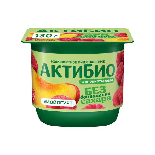 АктиБио Биойогурт 130гр 1/6шт Персик-малина безлактозный 3%