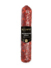 филе куриное, свинина, шпик свиной, соевый растительный белок, соль нитритная (соль пищевая, фиксатор окраски - нитрит натрия), соль пищевая, животный белок, декстроза, антиокислитель аскорбиновая кислота, регулятор кислотности лимонная кислота, краситель - кармины, перец черный молотый, усилитель вкуса и аромата 1 замещенный глутамат натрия, стартовые культуры Пищевая ценность на 100 г продукта (средние значения): белки - 14 г, жиры - 42 г, калорийность/ энергетическая ценность: 434ккал/1820 кДж.