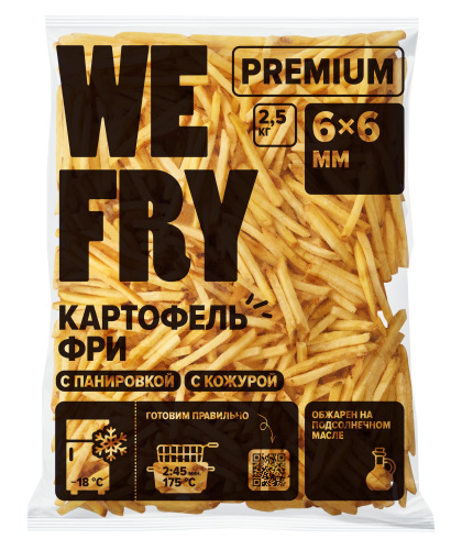 Картофель фри с панировкой 6х6мм 2,5кг 1/5шт Ви Фрай - заказать можно через сайт или контактный центр по выгодной цене с персональными скидками и акциями для оптовой закупки. Бесплатная доставка продуктов осуществляется по Санкт-Петербургу и Ленинградской области в удобное время, в офис, склад, магазин, или ресторан. Стоимость и возможность бесплатной доставки зависит от времени суток, дня недели, области, текущих акций и размера покупки.