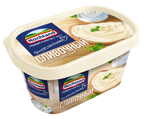 Сливочный плавленый сыр обладает кремовой текстурой и нежным вкусом. Продукт не содержит растительных жиров, а в его основе лежит полутвёрдый сыр, сливочное масло и сухое молоко. Сыр Hochland придает блюдам сливочный вкус, тягучую консистенцию и неповторимый аромат. Отлично подойдёт для горячих и холодных блюд.